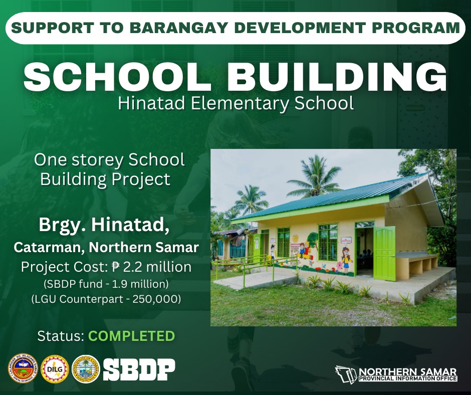 Pinaagi san Support to Barangay Development Program (SBDP), 4 nga mga barangay sa Catarman an mabubuligan magkayaon sin masuna nga kabubuwason. Konkreto ngan mas pinaupay nga kalsada, masarig nga eskwelahan, ngan limpyo nga tubig, ini an natatagamtaman yana san mga molupyo san barangay Polangi, Cervantes, Hinatad, ngan Tinowaran, tanan sakop san bungto san Catarman. Polangi continue reading : Mga proyekto pankauswagan: Farm to Market Road, Eskwelahan ngan Patubig