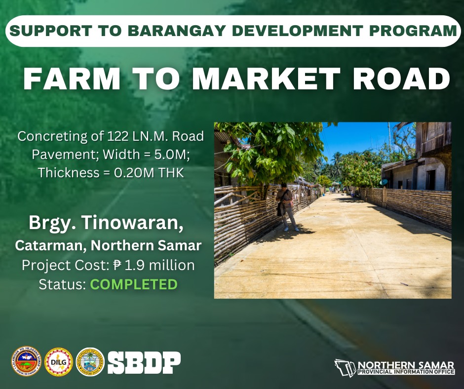 Pinaagi san Support to Barangay Development Program (SBDP), 4 nga mga barangay sa Catarman an mabubuligan magkayaon sin masuna nga kabubuwason. Konkreto ngan mas pinaupay nga kalsada, masarig nga eskwelahan, ngan limpyo nga tubig, ini an natatagamtaman yana san mga molupyo san barangay Polangi, Cervantes, Hinatad, ngan Tinowaran, tanan sakop san bungto san Catarman.